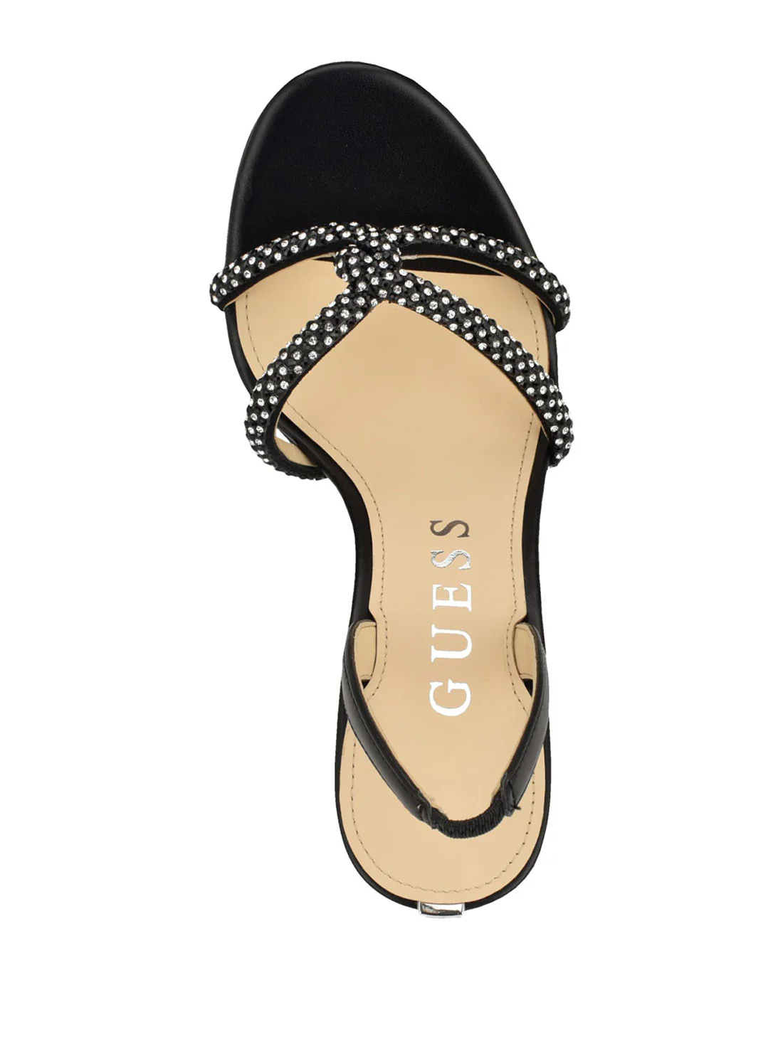 Add a little sparkle to your outfit with the Black Meomis Strappy Stiletto Heels. The rhinestone knotted strap adds a touch of glam while the sling back strap and stiletto heel provide a secure and stylish finish. Step out in style with these open round toe heels. Pair with a mini dress to complete your look this season.
